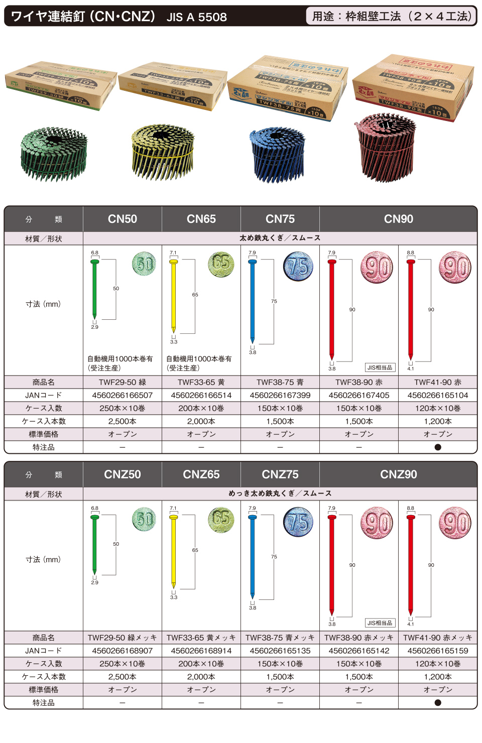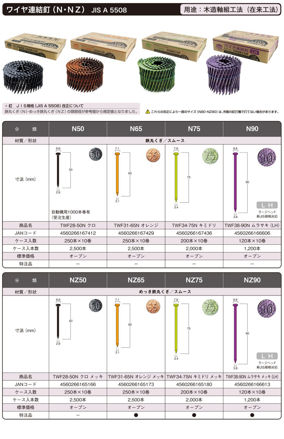 ワイヤ連結釘(N・NZ・CN・CNZ)